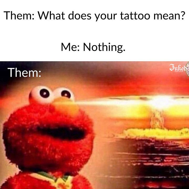 take my tattoos for example. i always thought about getting some as i’ve gotten older. last May, i was hospitalized after just turning 30 and was reminded how precious life is. that experience pushed me to say fuck it why not and i went full send last August